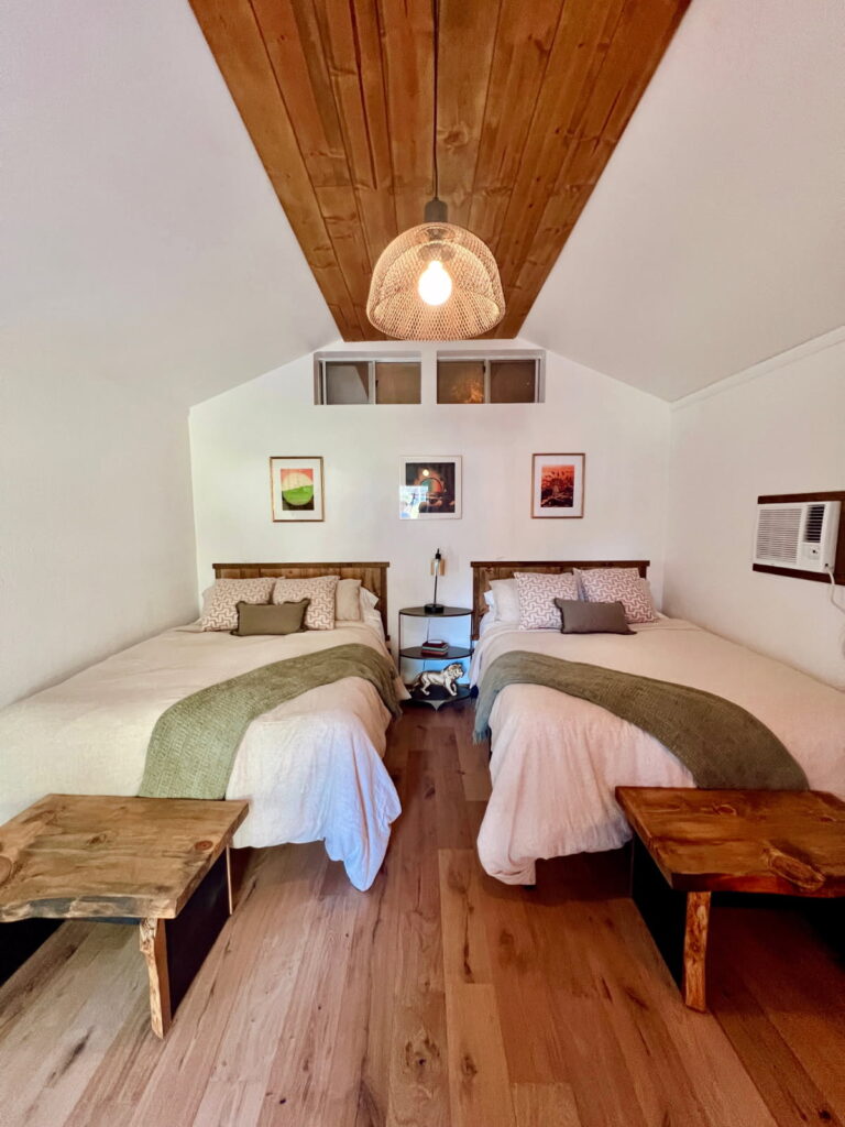 The lodge rooms are in the lower camp area and are the closest to all of the main activities and events. The dance events and spaces are nearby the lodge, but don’t worry…you won’t be able to hear the music at night.